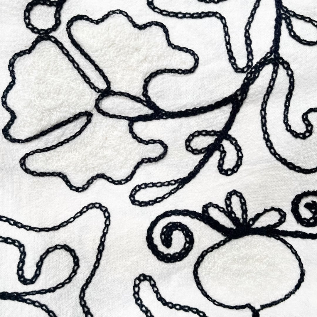 刺繍のアウトラインだけを残して、アートでシックなデザインに、でも所々内側にも刺繍が入って立体的な印象になってます。