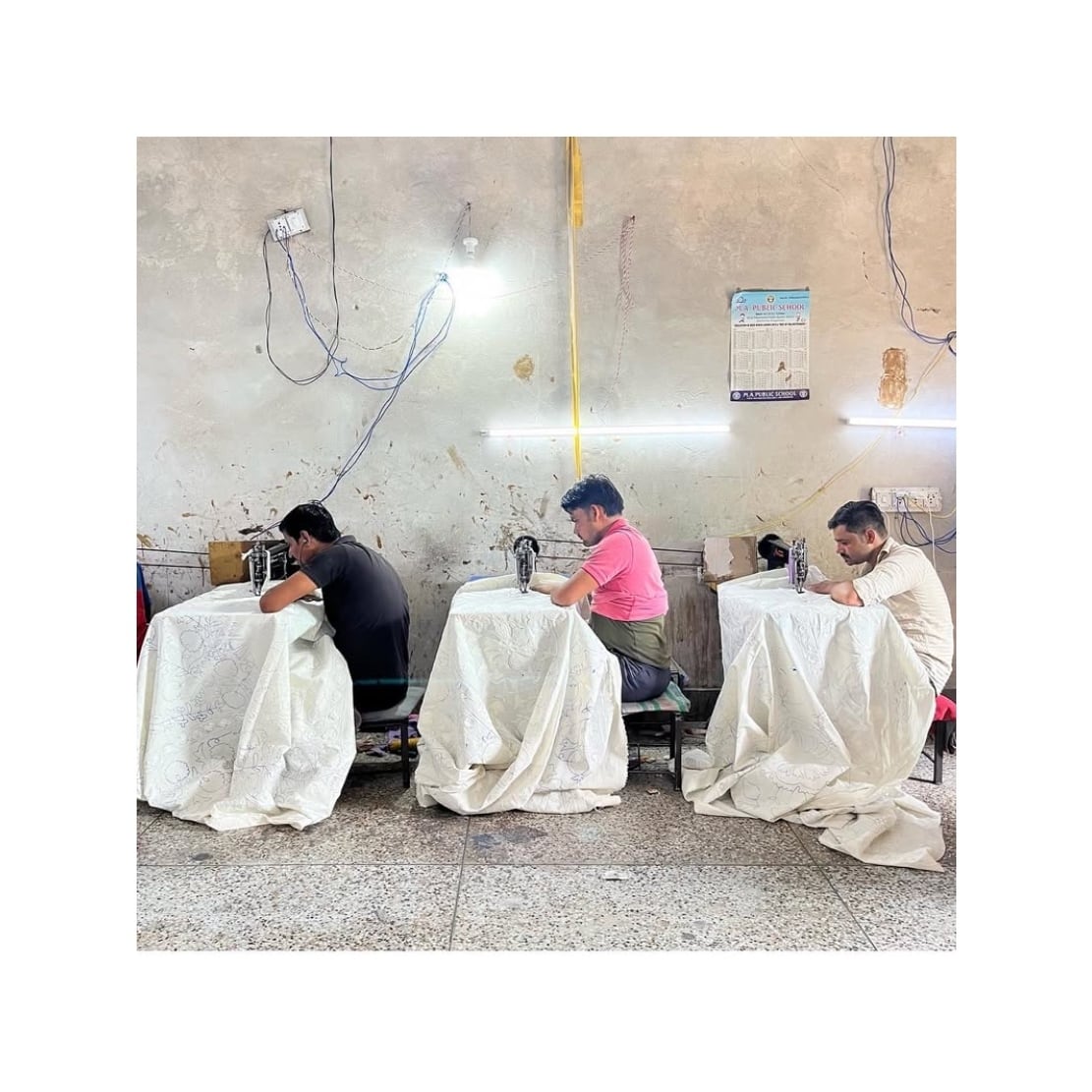 刺繍用ミシンで作られた新しいスザニですが、細かいデザインが特徴でベッドカバーサイズの生地を仕上げるのに丸1日かかります。
