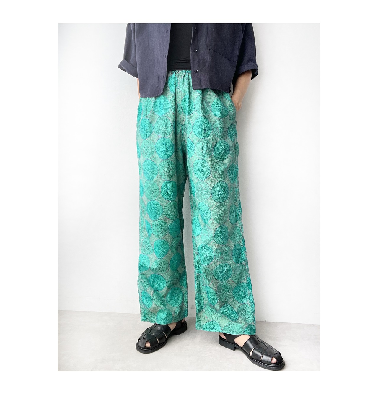 大判のシルクカンタストールから作ったゆったりパンツ。