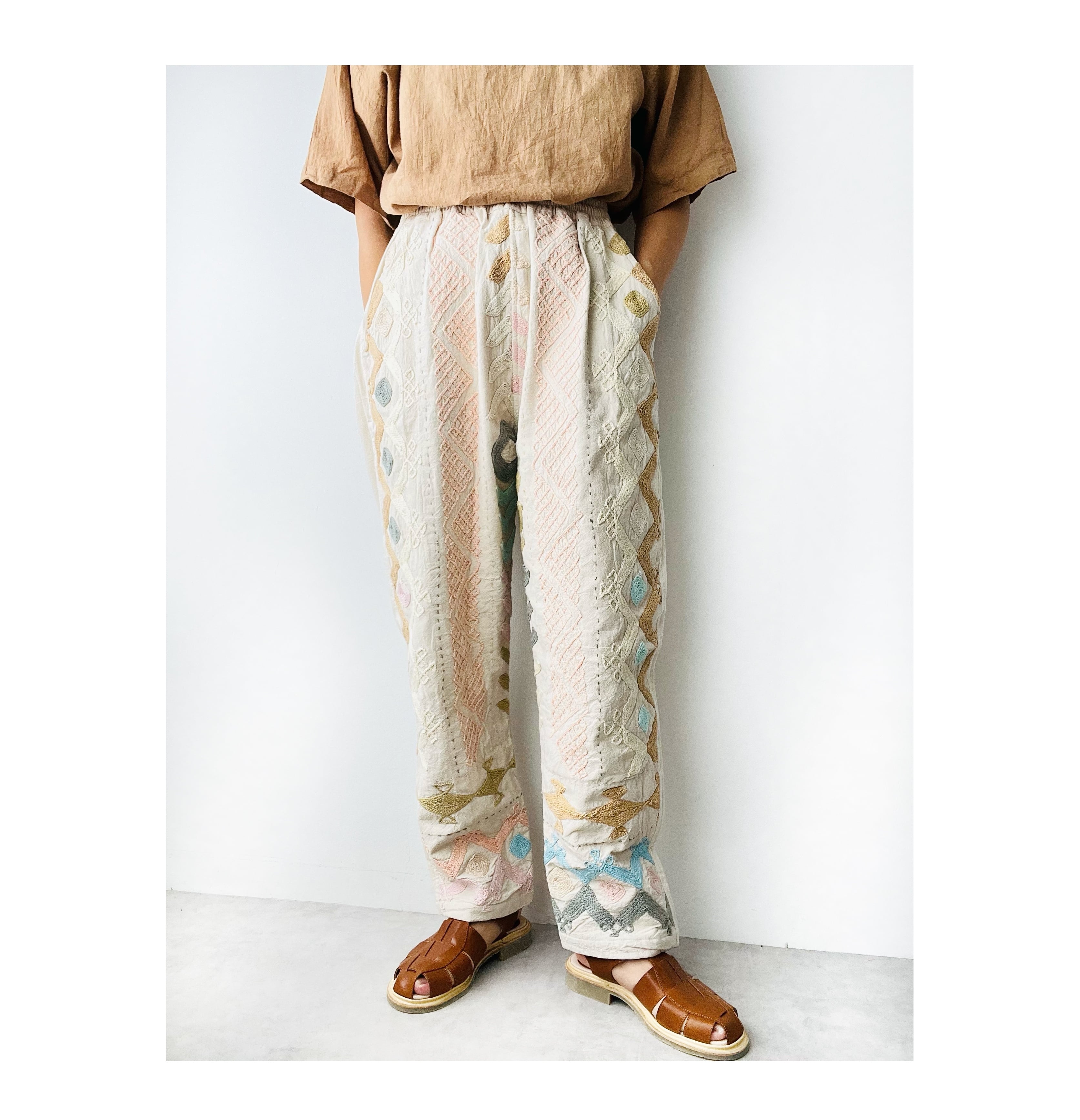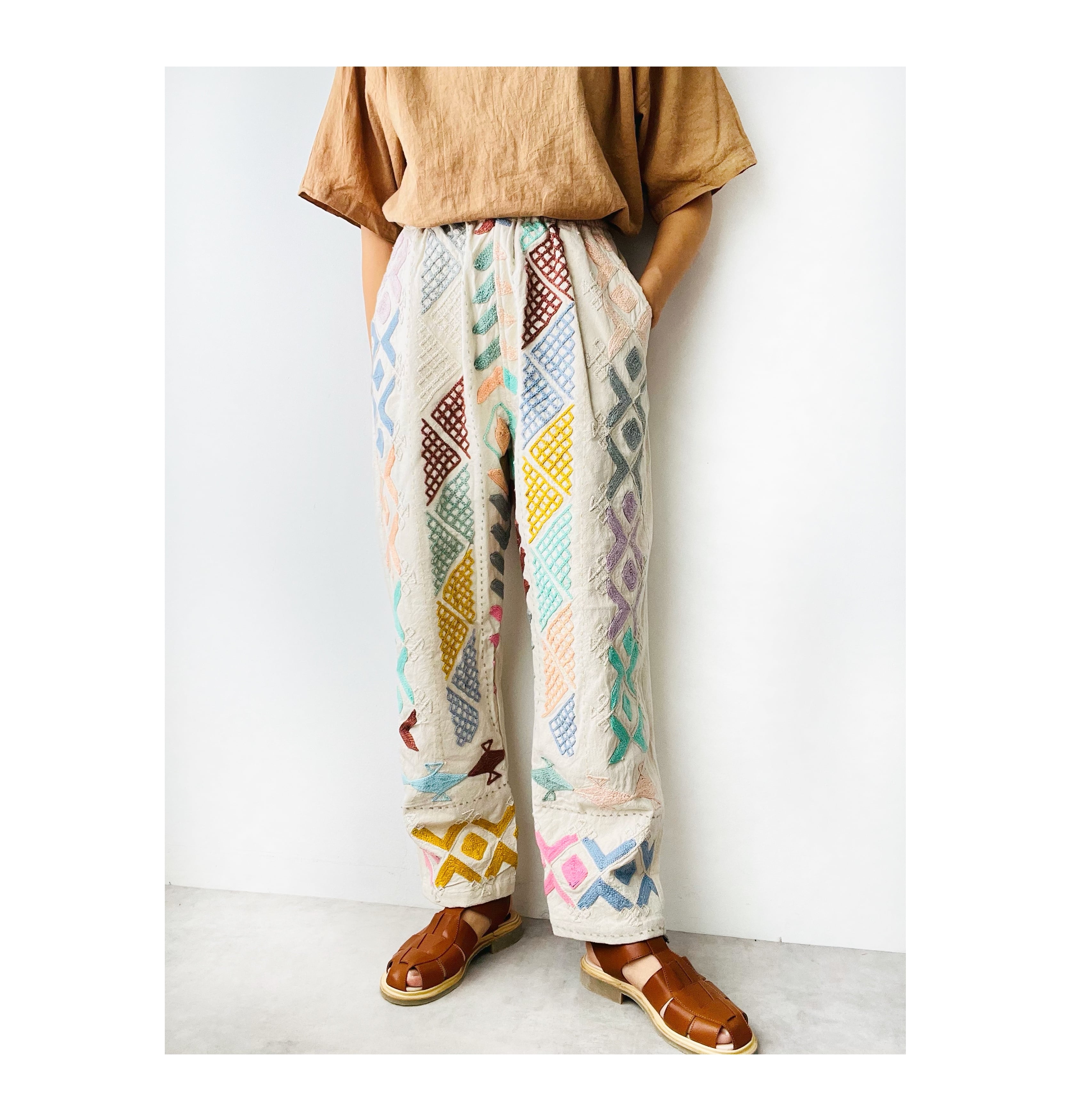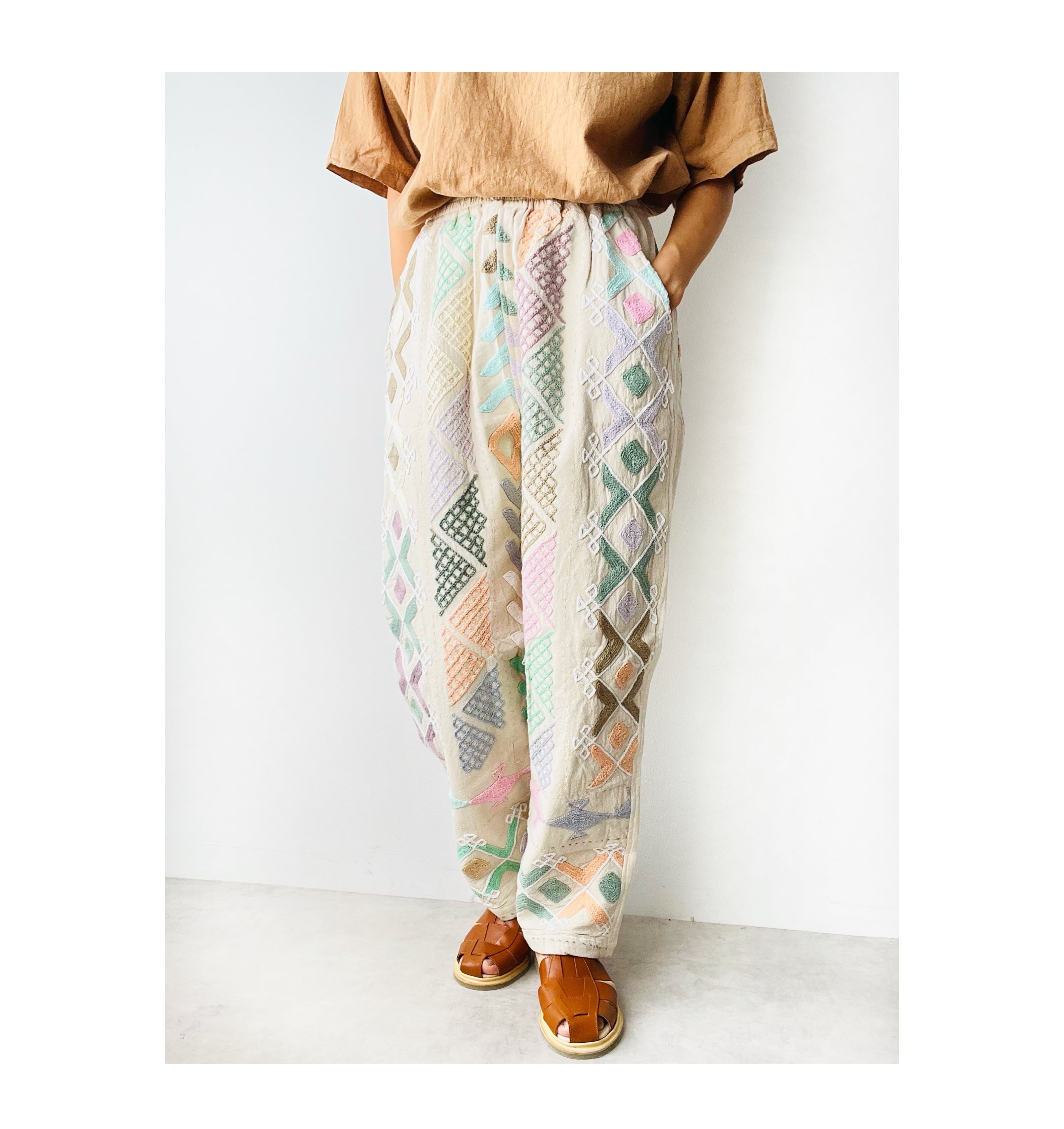 毎回大人気の手刺繍パンツ入荷。こちらはテーパードタイプ。