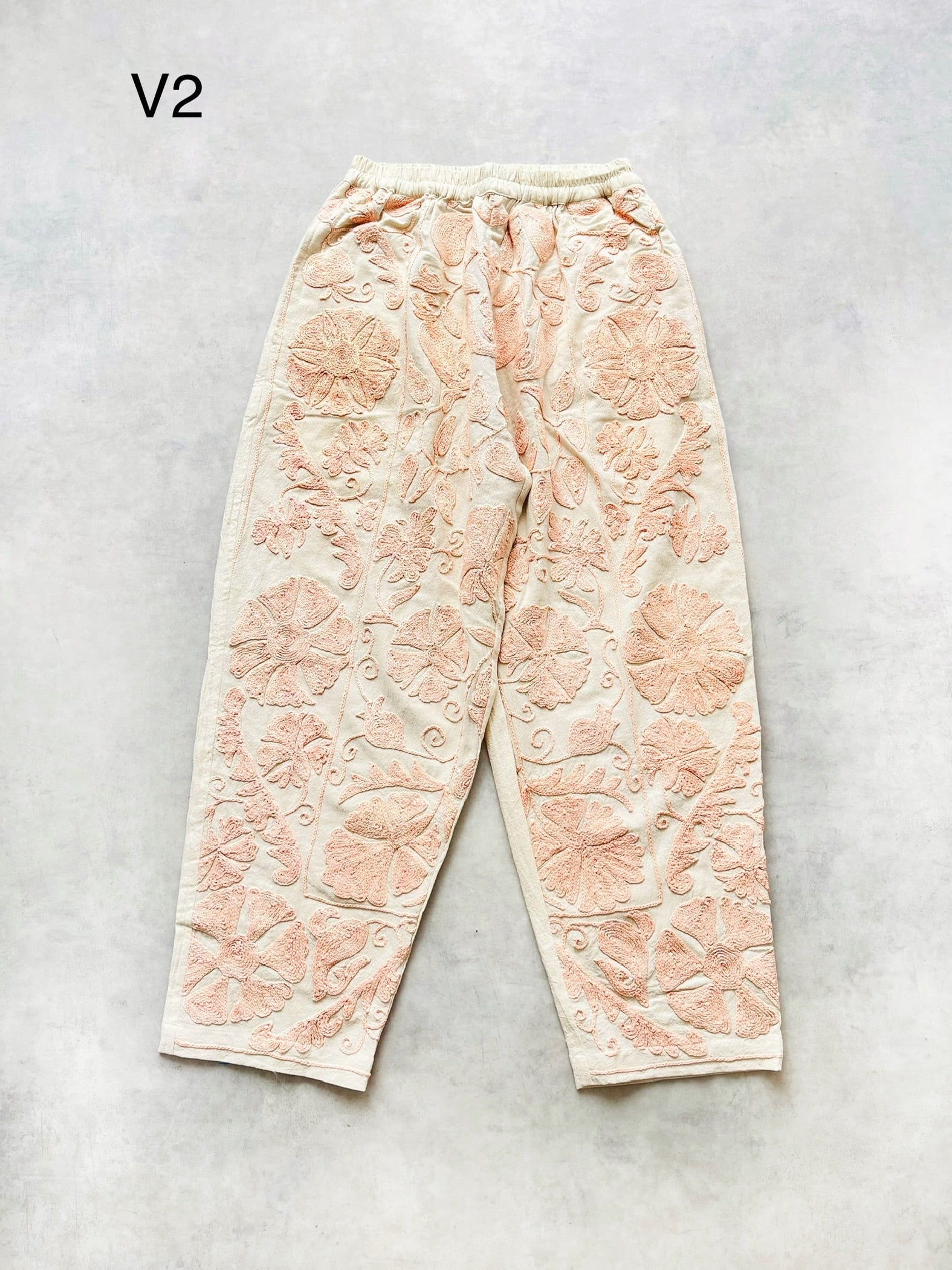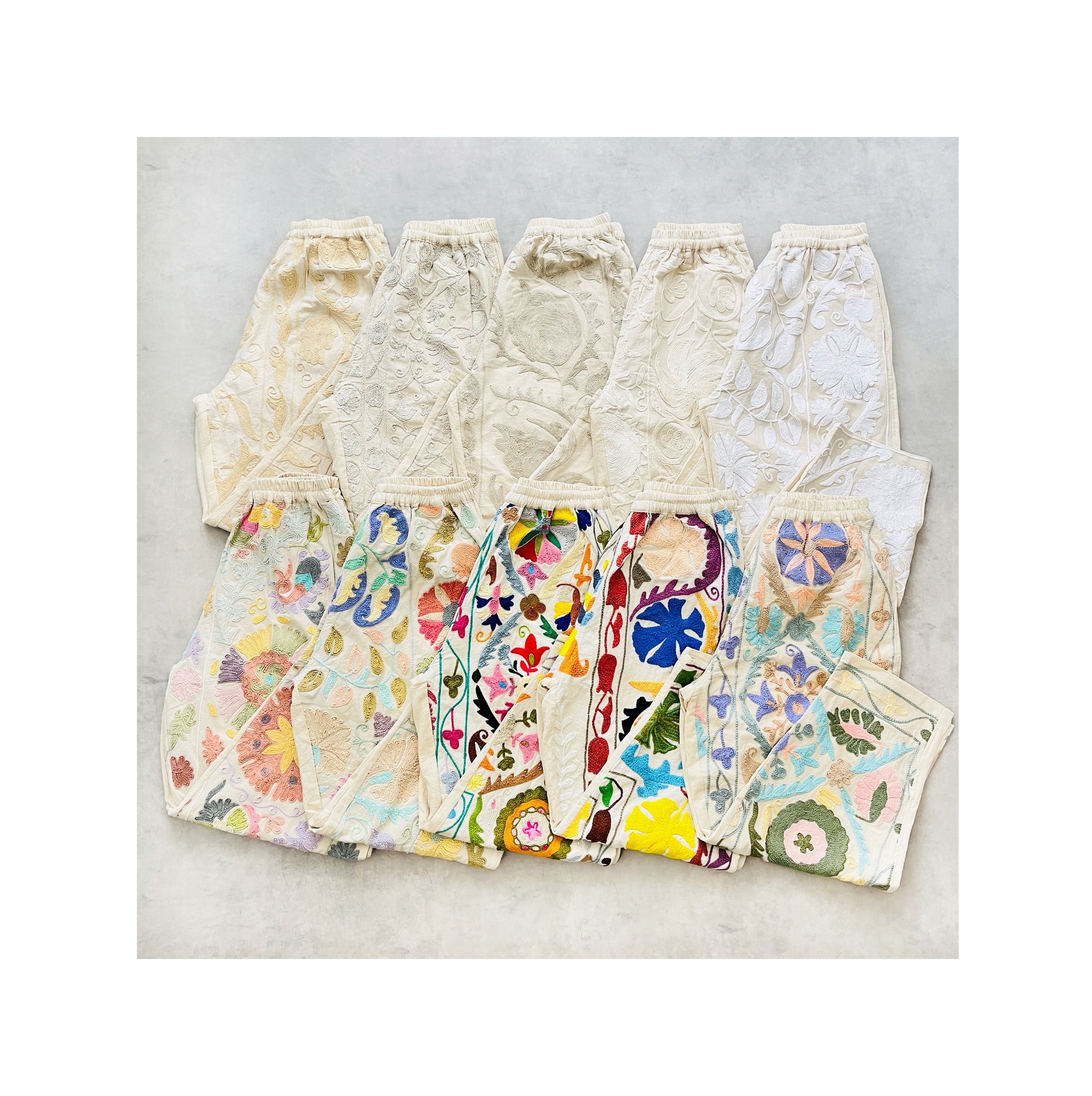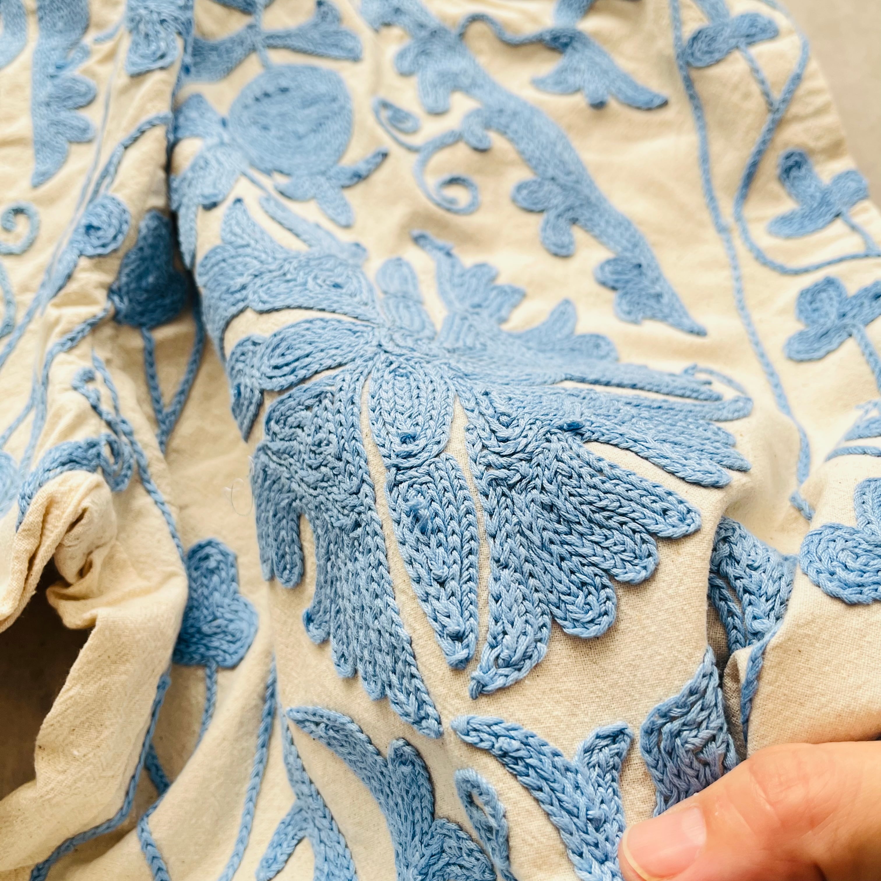 ポキプシー初期から取り扱っている新しいスザニ生地。全て手刺繍でベットカバーサイズ1枚仕上げるのに約1ヶ月かかります。
