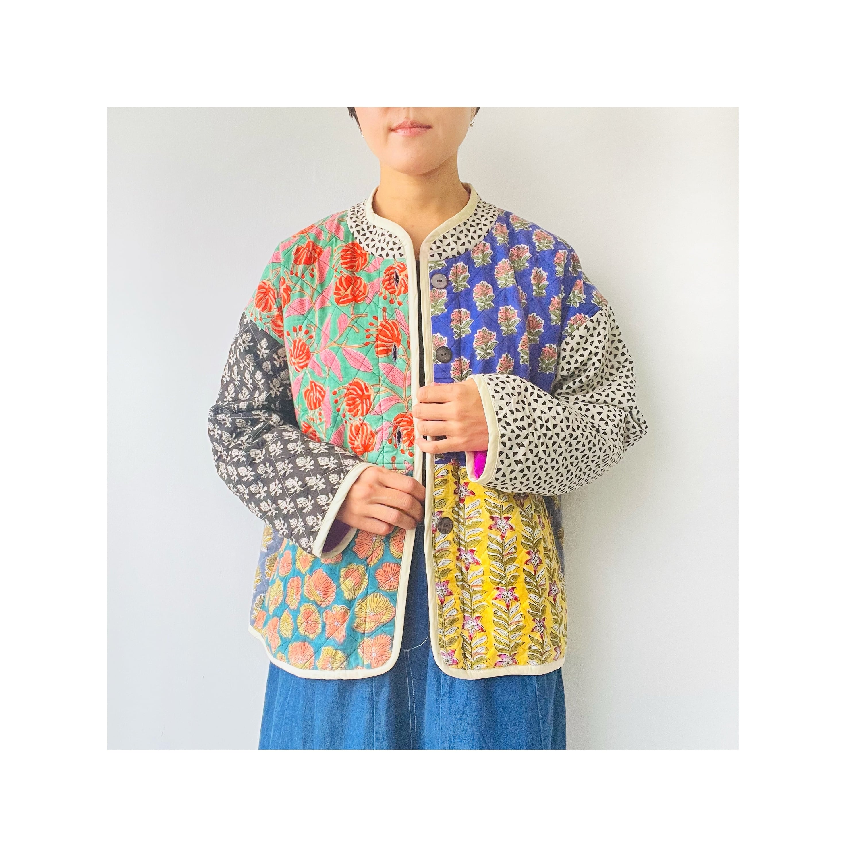 ブロックプリントのパッチワークキルティングジャケットを作りました。