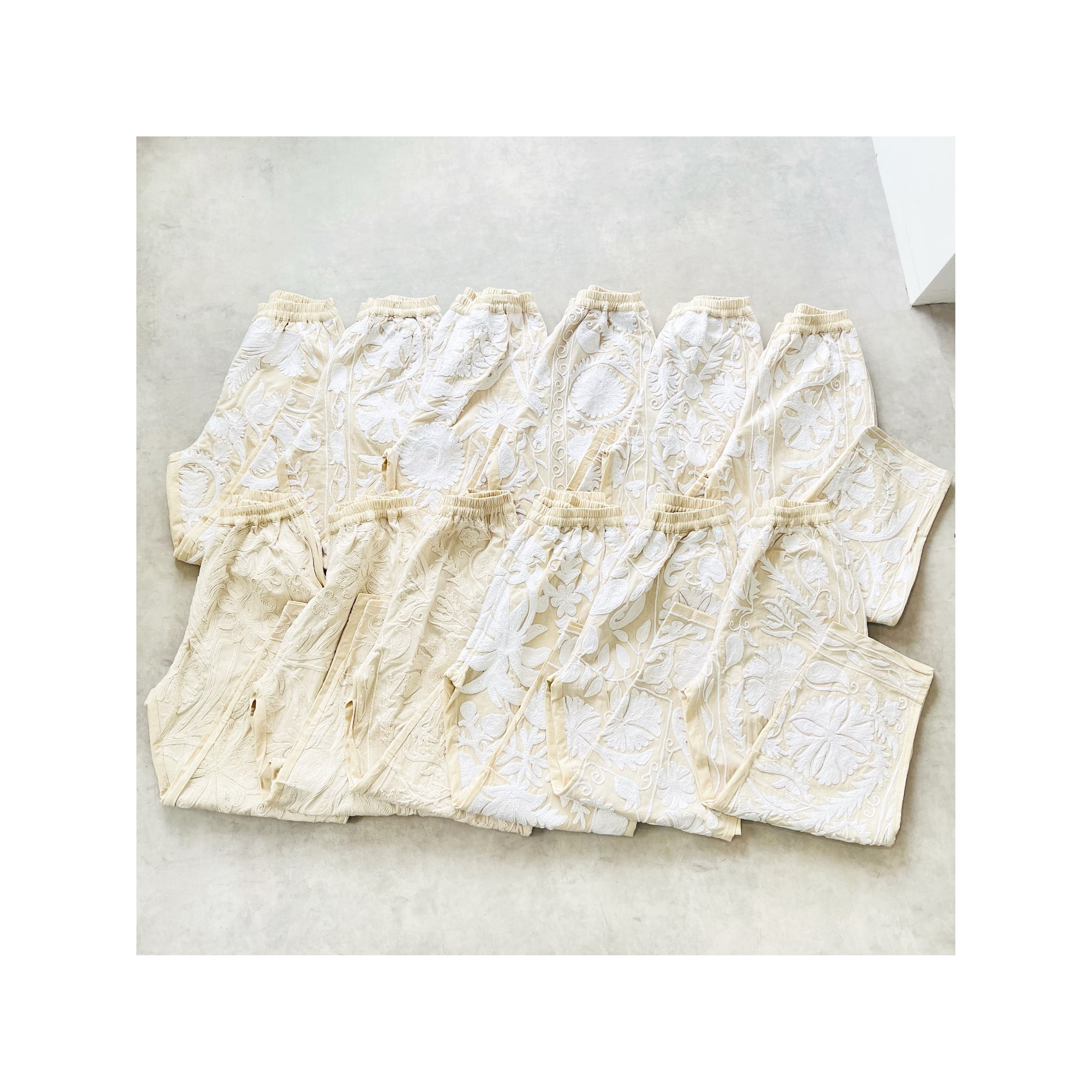 毎年大人気のホワイトスザニのパンツが待望の入荷。