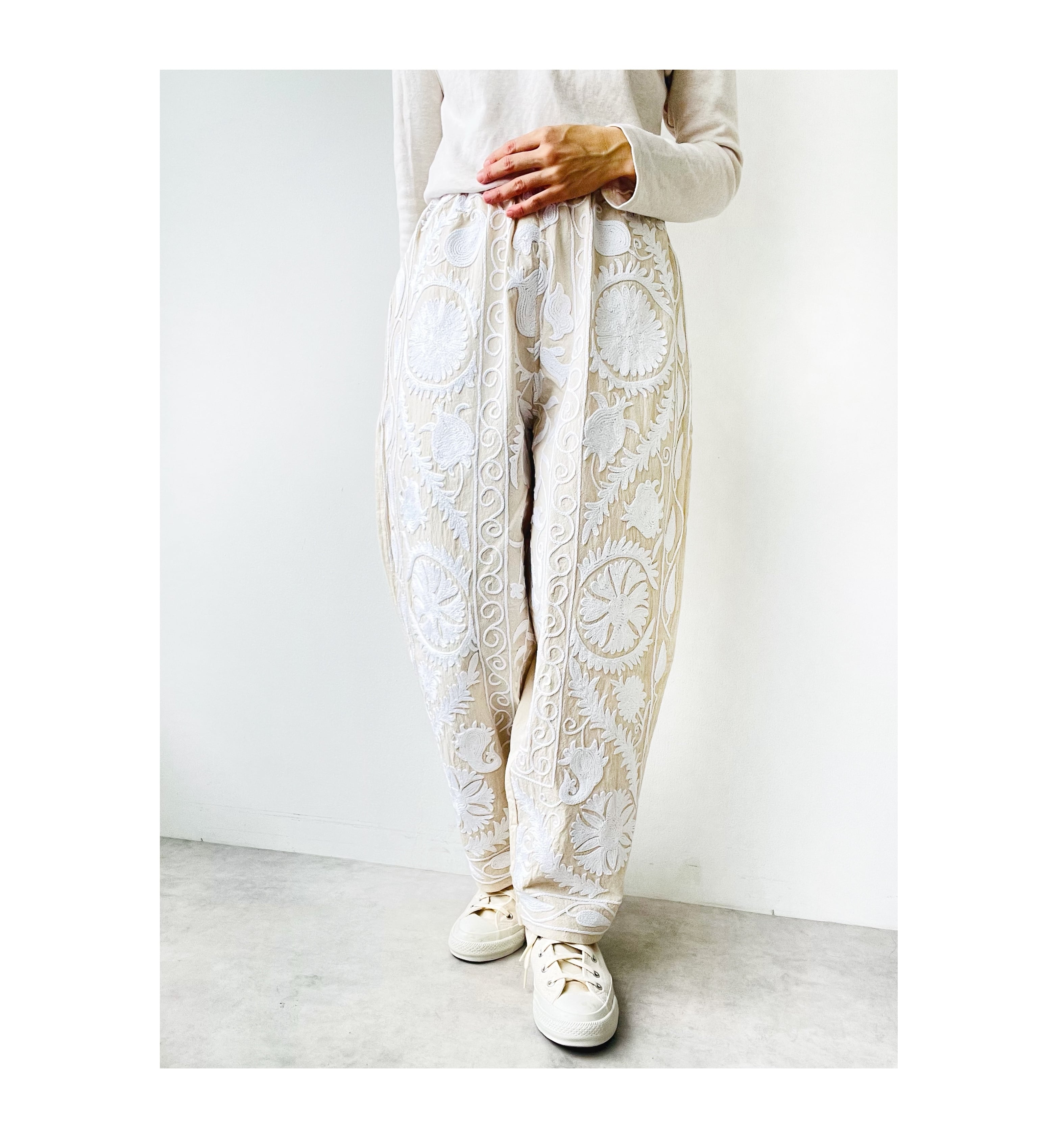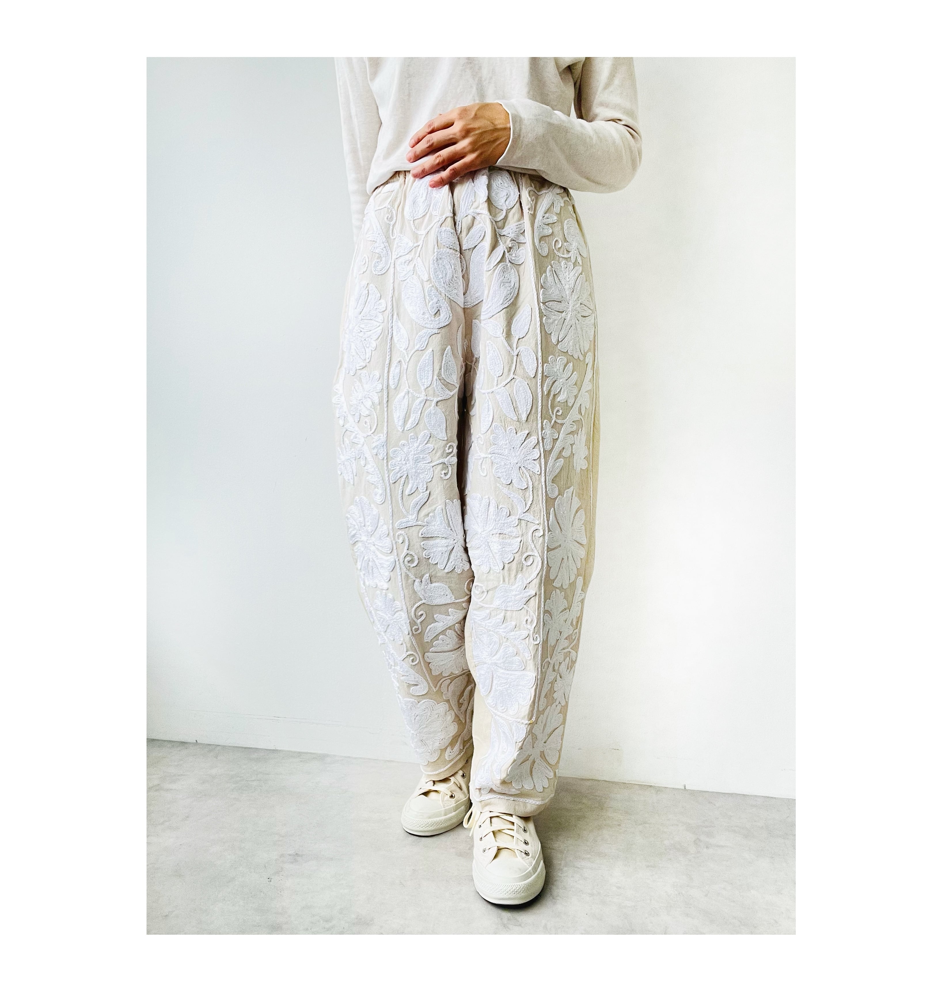 手刺繍ホワイトスザニパンツ(W8~11)
