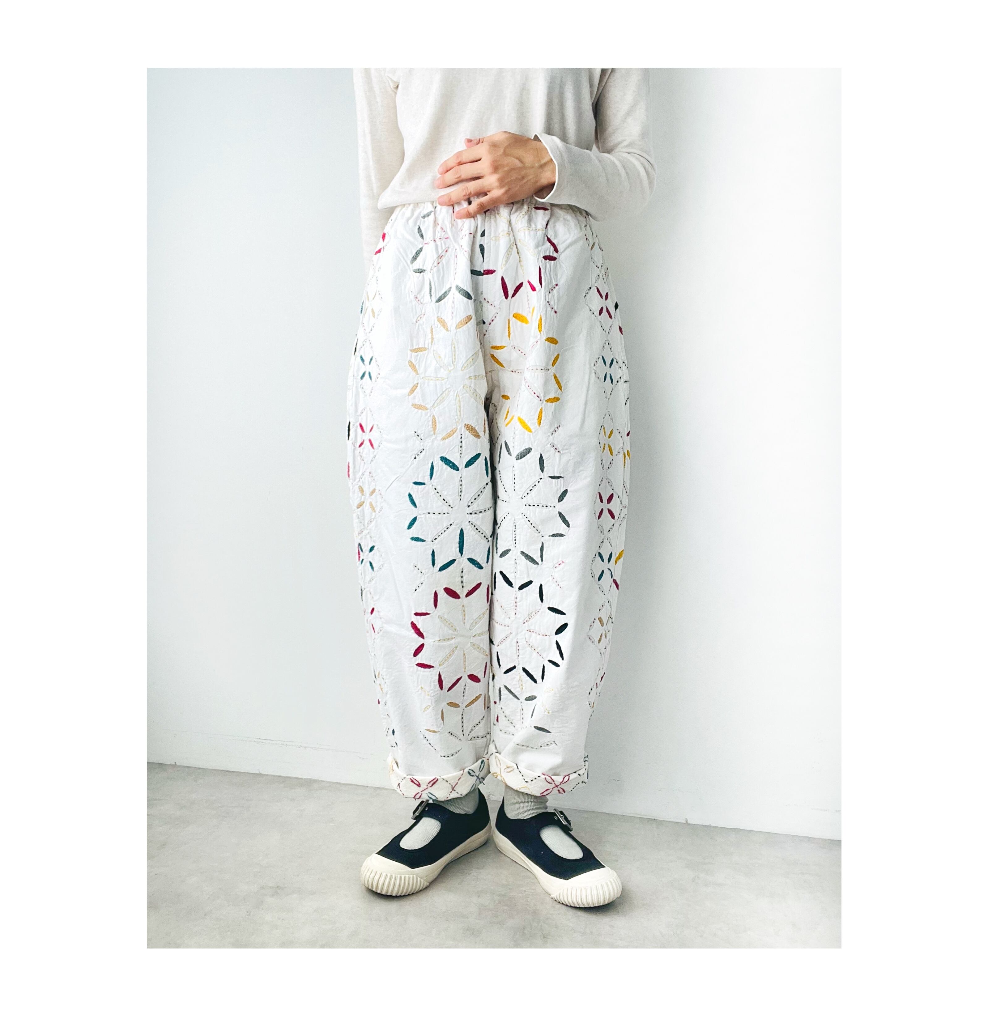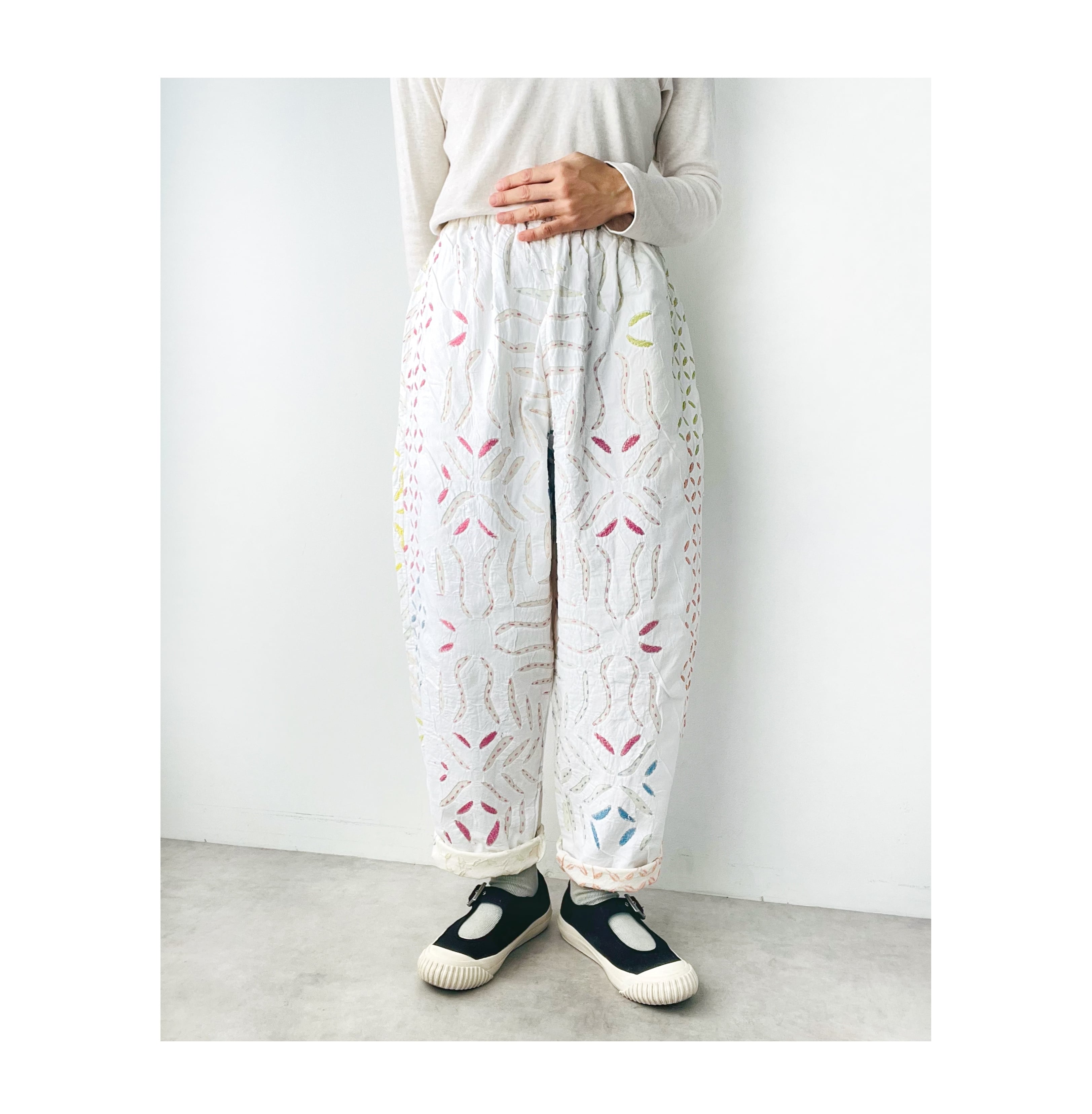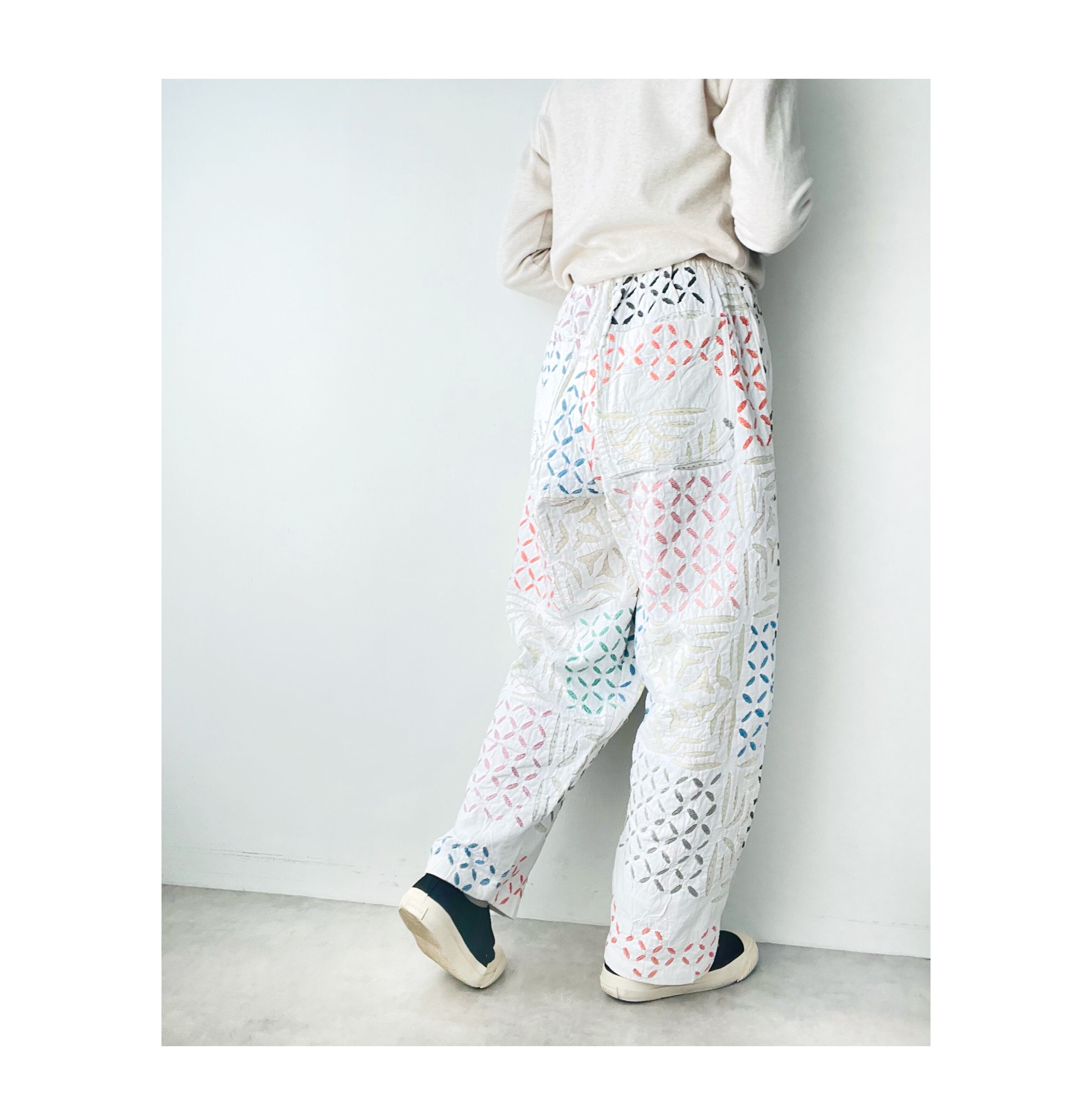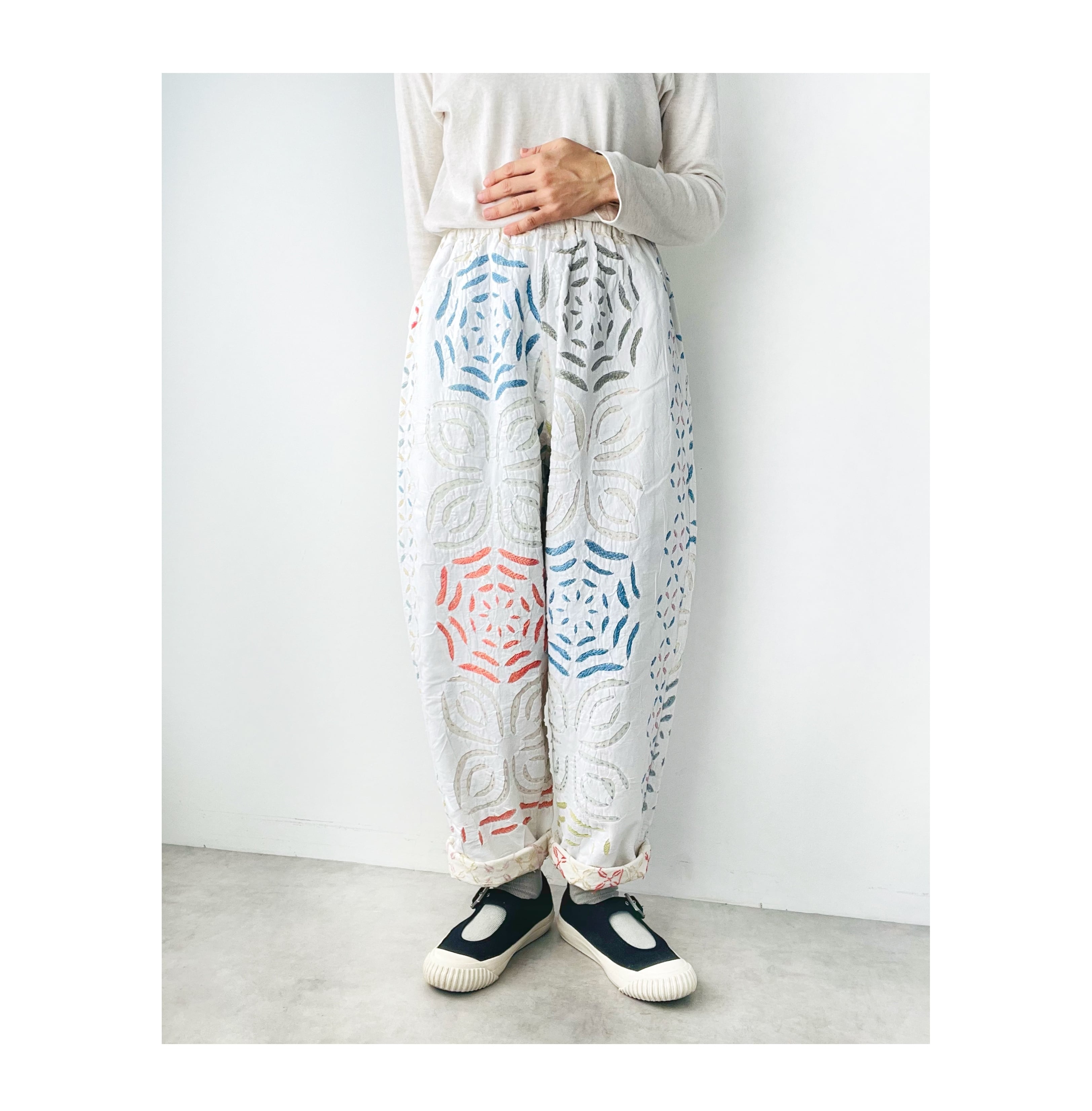 ビンテージのアメリカンキルトのような雰囲気で履くだけで気分が上がります。
