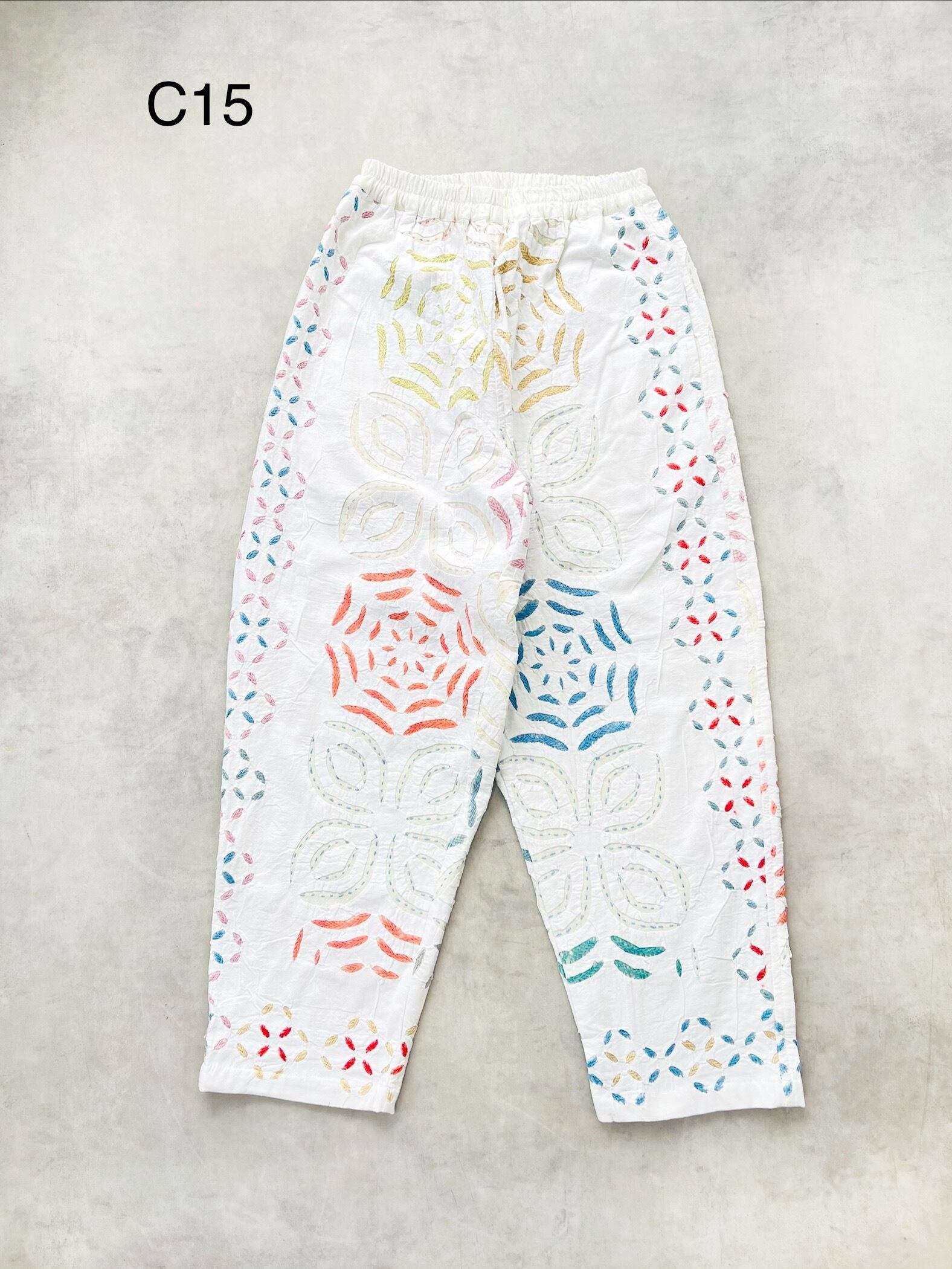 また刺繍途中の縫われてない箇所やほつれ、縫い目が荒い箇所、製作過程におけるシミ等がある場合がございます。手仕事の特性としてご了承ください。