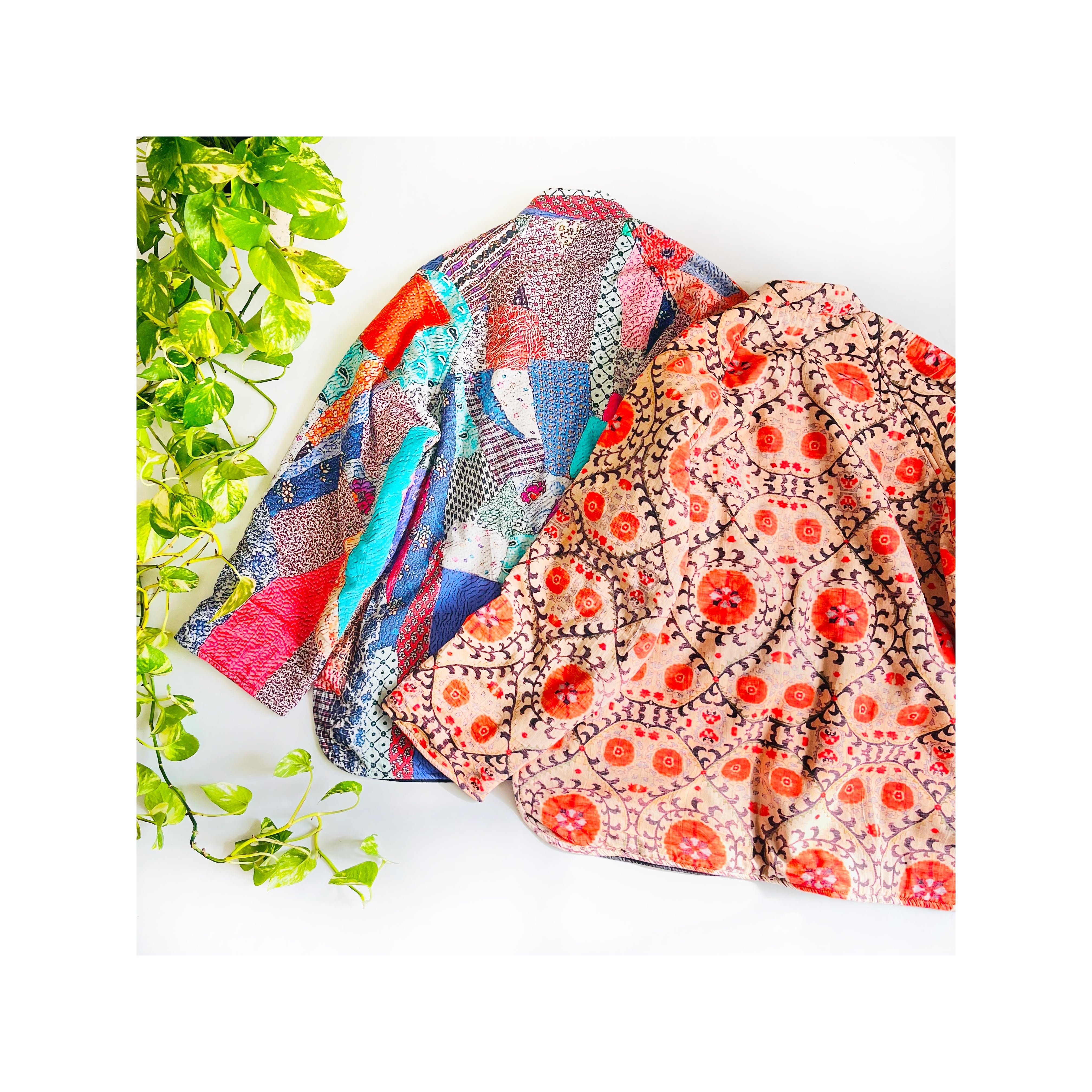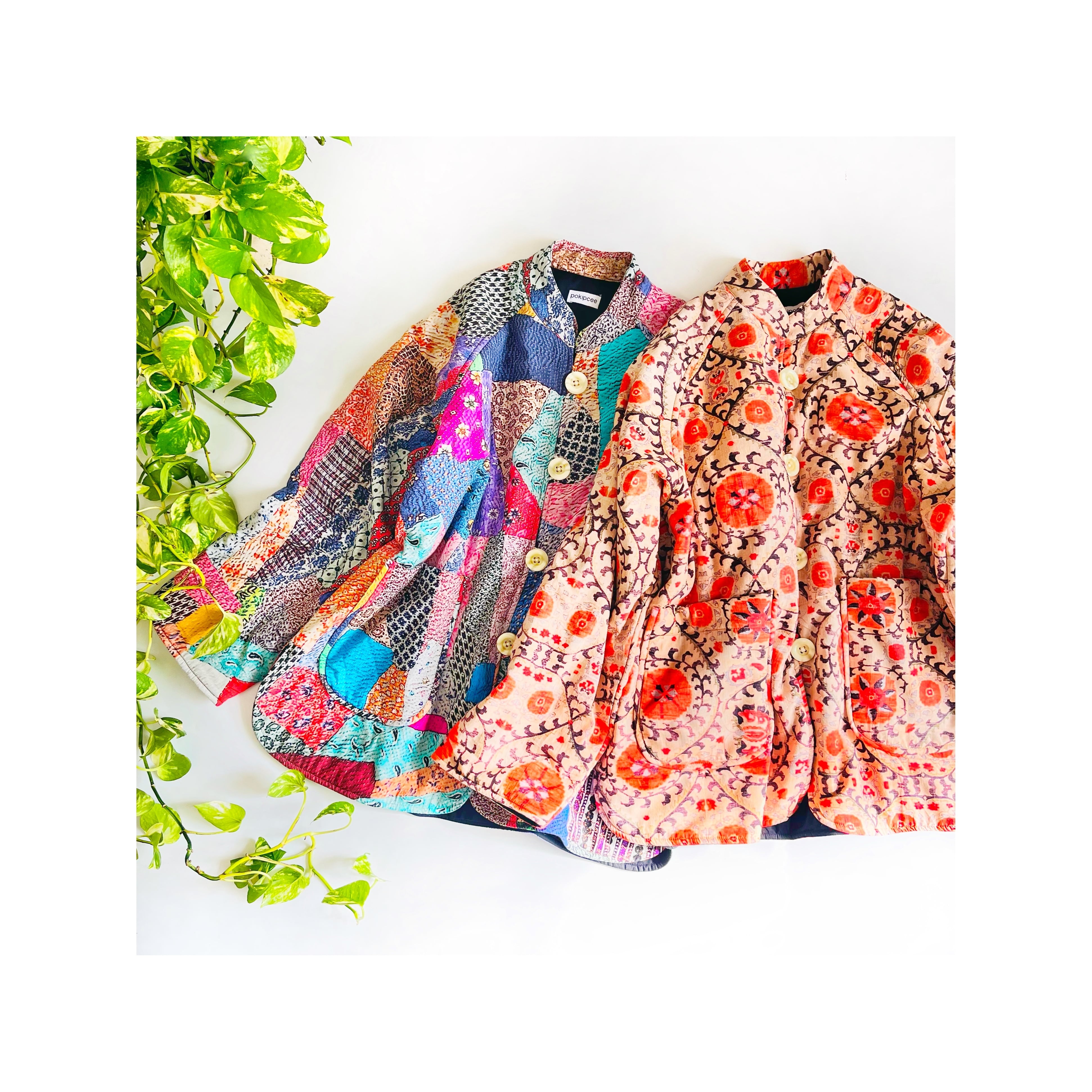 ポキプシーオリジナルで作ってもらったグドゥリープリント生地を使った中綿ジャケット。